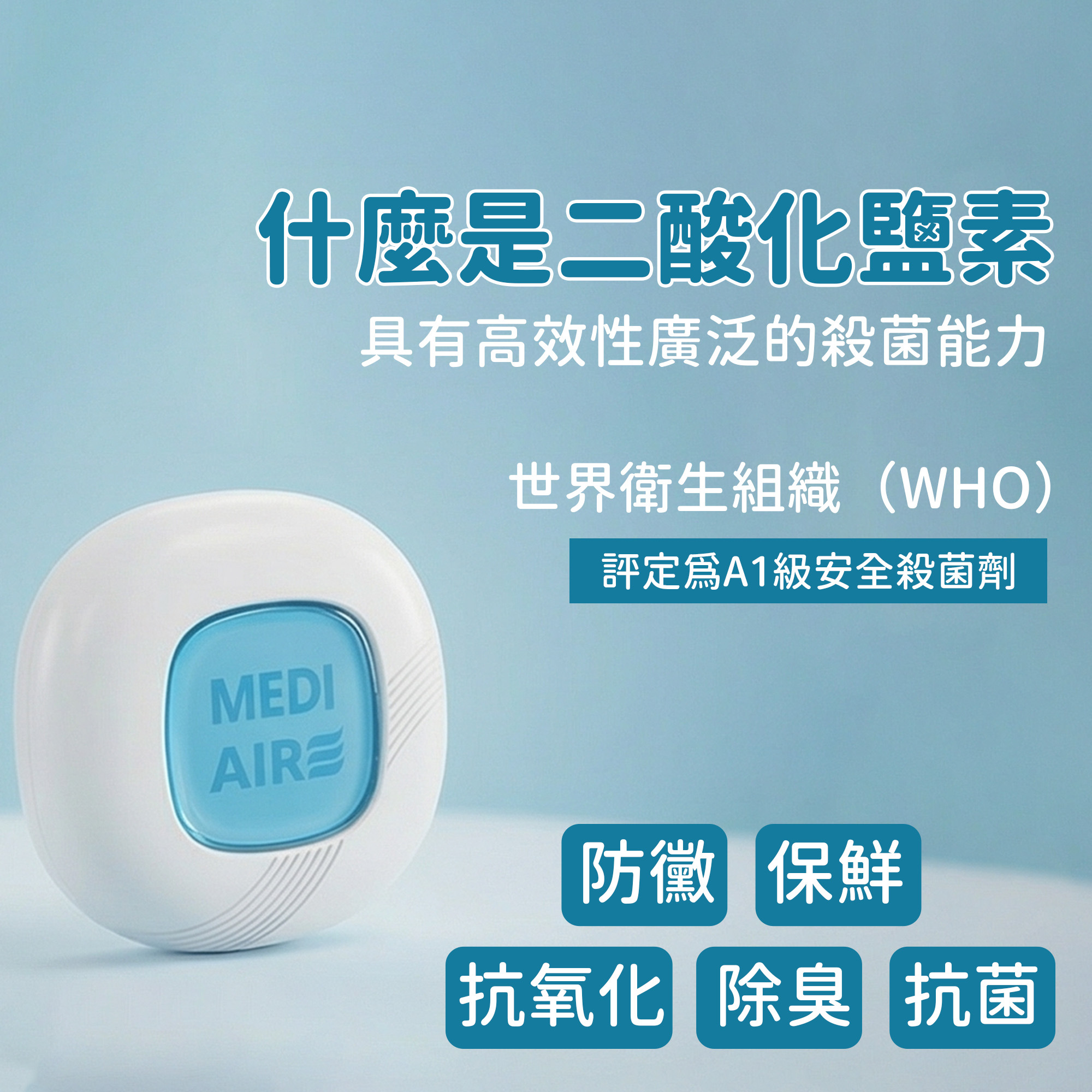 A1:Mediaire 擁有 SGS 檢驗高達 99.9% 抗菌率,並採用 WHO 世界衛生組織認可的 A1 級安全消毒成分。經過實驗室測試,能有效對抗冠狀病毒,給您最頂級且具備科學實證的隨身防護。